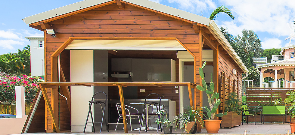 - Une cuisine extérieure sur terrasse couverte, équipée de (micro-ondes, four électrique, plaques de cuisson, réfrigérateur)