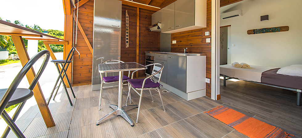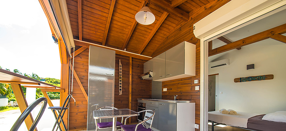 Le bungalow pour 2 personnes d'environ 25m² est entièrement neuf et confortablement équipé.
